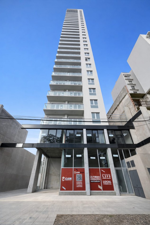 El edificio es una torre moderna de 27 pisos que se destaca por su diseño contemporáneo y sus espacios pensados para disfrutar. En la terraza ofrece piscina y salón de usos múltiples, generando un ámbito ideal para reuniones y momentos de relax.